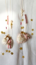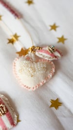 - pendente in tessuto panna, a forma di cuore, con applicazione di perline, ricamo a mano