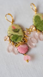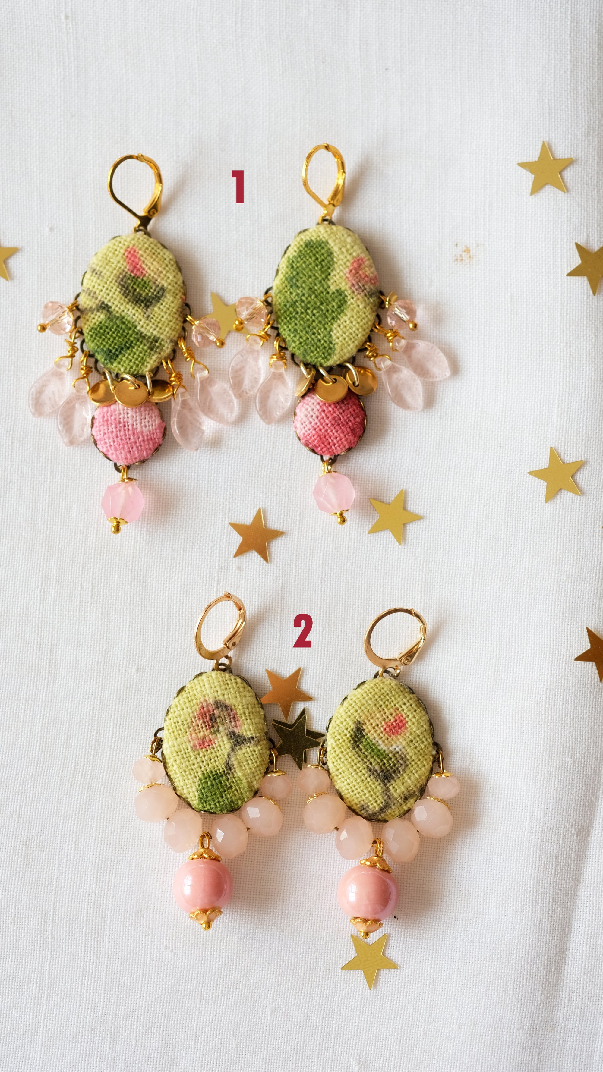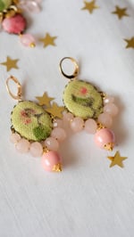Completano perle in ceramica rosa, foglie in vetro rosa e pietre naturali