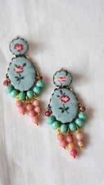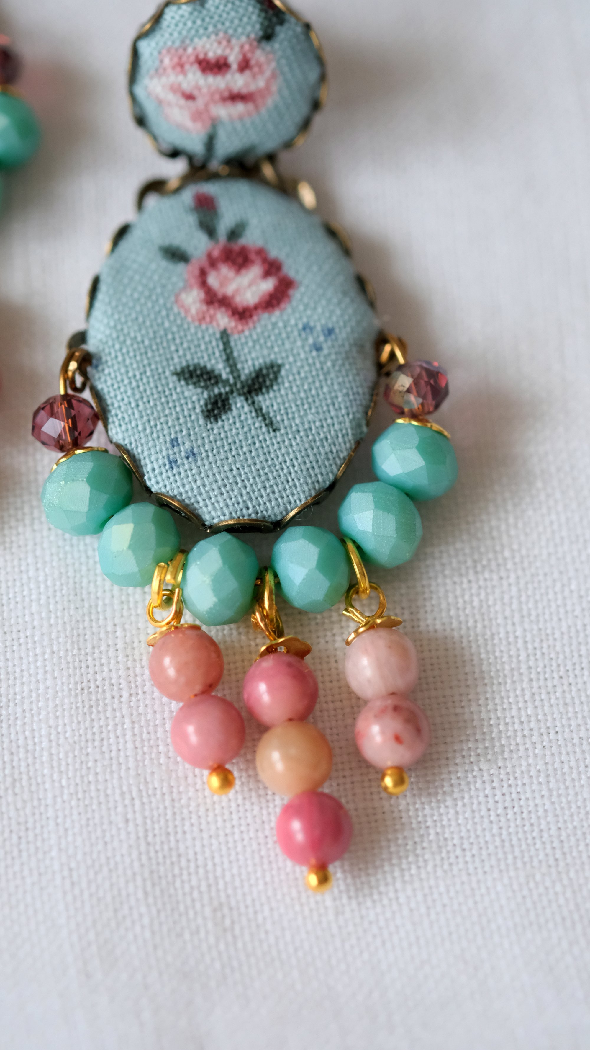 Completano cristalli in color azzurro/tiffany - perle in pietra naturale rosa.