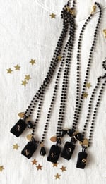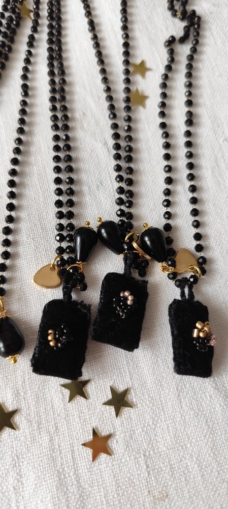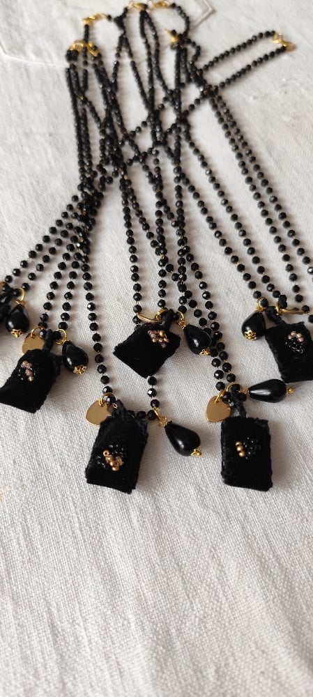 Collane con ciondolo in velluto nero, con ricamo di perline.